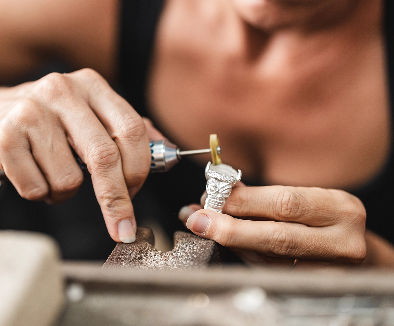 Vient ensuite la métamorphose. Grâce au procédé ancestral de la fonte à cire perdue, la sculpture disparaît pour renaître en argent massif 925. Ce rituel de transformation, presque alchimique, donne naissance à des pièces uniques : aucune ne peut être reproduite à l’identique, car chaque sculpture en cire est vouée à disparaître pour laisser place à sa seule et unique incarnation en métal précieux.
